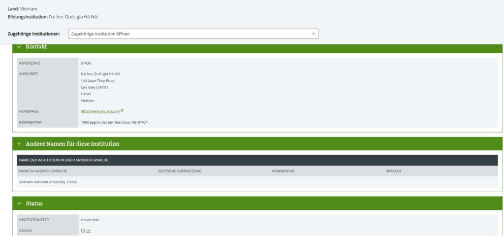 Việc tra cứu theo tên trường (Institutionen) có vai trò thiết yếu trong việc xác định liệu trường đại học bạn học có được công nhận (H+) hay không. Dưới đây là hướng dẫn từng bước chi tiết: